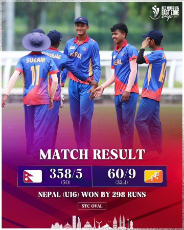 नेपाल यु१६ को शान्दार जित : भुटानलाई २९८ रनले पराजित....
